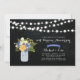 Una elegante invitación de aniversario de boda rústica con un jarrón de flores y flores con un fondo de pizarra.