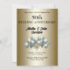 Esta elegante invitación para el 50 aniversario de boda está diseñada con un ramo de tulipanes blancos, sobre un fondo de color dorado. El texto de la parte frontal incluye los nombres de la pareja, fecha del evento, hora, ubicación y dirección. El texto de la parte posterior incluye los detalles de RSVP sobre un fondo de color dorado, con un acento de tulipanes blancos. Para personalizar, simplemente inserte sus datos en nuestra plantilla fácil, reemplazando el texto de muestra. Asegúrese de ver las piezas adicionales que coinciden con esta Colección de 50 Aniversario de Boda Dorado.