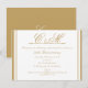 Esta invitación de aniversario de bodas número 50 con monograma presenta algunas líneas de color dorado en los lados de diferentes grosores. El diseño también incluye un divisor decorativo de color dorado que aparece directamente debajo de las iniciales de la pareja. El área de fondo del texto es blanca y he utilizado el color dorado para el texto. La parte posterior de la invitación también es de color dorado y se puede utilizar simple o con el monograma de la pareja en blanco. Esta invitación dorada de aniversario de bodas número 50 está lista para ser personalizada y es adecuada para cualquier persona que desee una invitación de monograma simple.