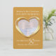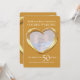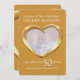 Invitación de aniversario de bodas de oro 50. Hermoso efecto de oro líquido en forma de corazón impreso en gráficos. Invitación de aniversario de bodas de oro 50. Personalice con los detalles de su fiesta de bodas de oro y la foto de la pareja. El aniversario de 50 años se asocia tradicionalmente con el oro y el corazón simboliza el amor. © Gráficos y diseño original de Sarah Trett. www.sarahtrett.com para www.mylittleeden.com