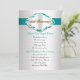 Invitación de renovación de votos de aniversario número 50 en azul turquesa y blanco por Irisangel. Composición de imagen e ilustración para elegante invitación formal de aniversario de bodas sobre fondo de satén blanco con suave patrón damasco y hermosa cinta azul turquesa. El texto es totalmente personalizable. Esta es una imagen impresa y no contiene adornos separados, por lo que no necesita franqueo adicional.