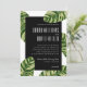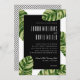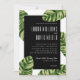 Esta invitación a la boda de palmeras tropicales es perfecta para un boda con temática playera. Con dibujos de hojas de palma botánicas vintage y fuentes inspiradas en el Art Déco, esta invitación a la boda de la playa se puede personalizar en línea con tus detalles. Tiene un respaldo de rayas blancas y negras con una moderna tarjeta de invitación a la boda de moda.
