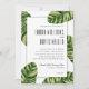 Esta invitación a la boda de palmeras tropicales es perfecta para un boda con temática playera. Con dibujos de hojas de palma botánicas vintage y fuentes inspiradas en el Art Déco, esta invitación a la boda de la playa se puede personalizar en línea con tus detalles. Tiene un respaldo de rayas blancas y negras con una moderna tarjeta de invitación a la boda de moda.