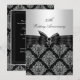 Invitación de Aniversario. Damask plateado y negro con lazo negro con joya. Exclusivo de Zazzle. Personaliza con tus propios detalles. POR FAVOR TEN EN CUENTA que todas las imágenes planas! NO tienen lazos, diamantes o joyas reales!!