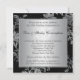 Esta elegante invitación de aniversario de bodas número 25 con estampado floral en negro y plata tiene solapas negras que están IMPRIMIENDO para que parezcan abiertas. Tiene un rollo decorativo negro en la parte delantera, junto con elegantes palabras que dicen "Aniversario de bodas número 25". Se pueden eliminar si se desea agregar texto propio. Se vería especialmente elegante en el papel de hielo metálico. La invitación es totalmente personalizable. Si necesita productos coincidentes, envíe un correo electrónico a niteowlstudio@gmail.com con su solicitud.