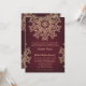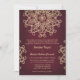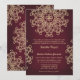 Una hermosa invitación de boda en color burdeos y dorado con un patrón de medallón de sari ornamental exótico inspirado en la India CON UN DISEÑO DE EXPLOSIÓN SOLAR DE FLOR Y LOTUS. Esta elegante y hermosa invitación de boda moderna de estilo indio es perfecta para cualquier ocasión formal CON UN TEMA DE NOCHES ALADINO ARABES, MARROQUÍ, INDONESIO O DE ASIA ORIENTAL. Diseñado por Chrissy H. Studios, LLC. Todos los derechos reservados.