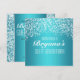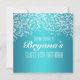 Invitación de brillo de fiesta azul acuatica. Personalice la parte delantera y trasera para cualquier evento.