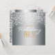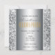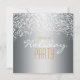 Invitación de brillo y destellos para fiesta de vacaciones plateada. Personalice la parte delantera y trasera para cualquier evento.