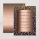 Elegante, fresco, glamuroso y femenino para una fiesta de cumpleaños número 50 (o cualquier edad) con un patrón de leopardo marrón, dorado y negro, decorado con confetti dorado. Un falso marco metálico de bronce con espacio para la información de su fiesta. Retroceso: fondo falso metálico de bronce. Esta tarjeta también está disponible en nuestra tienda sin ningún color de fondo en la parte posterior. Sugerencia: Si no desea que se vea como una postal, haga clic en personalizar, vaya a la parte posterior y quite el separador y el sello postal.