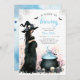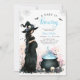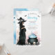 Fijen la escena para una celebración de hechizos con esta Invitación a la Bruja de Baby Shower de Halloween, perfecta para dar la bienvenida a un niño pequeño este octubre! Con un impresionante ilustracion acuático de una bruja gótica, un caldero azul brillante, murciélagos flotantes, telarañas y acentos de cráneo, este diseño combina elegancia sobria con el encanto de Halloween. Con un suave toque de niebla azul, es ideal para una ducha con un toque mágico con el tema "Un bebé se está preparando". Personalizable completo y perfecto para una ducha de bebé encantada, espeluznante y elegante.