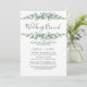 Establece el tono para un brunch de boda rústico y elegante con esta hermosamente diseñada invitación. Con un marco inspirado en boho de hojas verdes exuberantes y acentos botánicos, aporta un encanto natural a tu celebración. La corona campestre a juego en la parte posterior se puede personalizar con el monograma de la pareja para un toque único y emotivo.