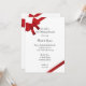 Invite a los invitados a seguir la fiesta la mañana después de la ceremonia de matrimonio de diciembre con la festiva Invitación de Brunch de Invierno de Lazos Rojos después de la Boda. Esta elegante invitación personalizada de Desayuno o Almuerzo después de la Boda invernal presenta un diseño de lazo rojo adornando las esquinas con un fondo blanco que se asemeja a un regalo de Navidad envuelto.