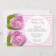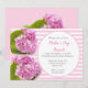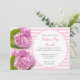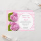 Esta invitación presenta un fondo a rayas rosa pastel y blanco con dos flores de hortensia rosadas a un lado. Personalice esta invitación con su propio texto. El diseño floral rosa es una plantilla perfecta para muchas ocasiones.