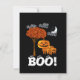 Destacando Letra Espeluznante Cielo Negro con Luna Creciente y Nubes con Familia de Calabazas Lindo de pie bajo un Árbol con Hojas de Otoño Naranjas Invitaciones de Fiesta de Halloween. Repetición de todos los gráficos en la parte posterior de la tarjeta pero con un simpático y amistoso BOO! con ojos! Para establecer el Ambiente! Ven si te atreves!