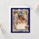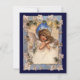 Ilustración vintage religiosa de la era victoriana imagen de la festividad de Navidad con un hermoso ángel. Este querubín angelical está rodeado de hiedra, flores, estrellas y campanas.
