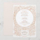 Nuestra encantada invitación a bodas con esquema de pavo real es una oda artística a la felicidad matrimonial, combinando tradición con un toque de fantasía. La invitación, en un cálido tono sepia, presenta una muestra simétrica de contornos de pavo real, sus columnas se despliegan con gracia para formar un romántico arco. Este diseño monocromo, que recuerda a un grabado clásico, crea una declaración delicada y audaz. Debajo, el texto, invitando a los invitados a compartir su alegría, está enmarcado por una guirnalda de flores y frutas, que sugiere abundancia y fertilidad. Esta invitación prepara el terreno para un boda lleno de elegancia, encanto y un toque de encanto vintage.