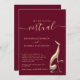 Anuncie la celebración de su boda en línea con estilo con esta elegante invitación a una boda virtual de oro y borgoña. Con caligrafía de moda, diseño minimalista y un acento escultórico moderno, esta invitación es perfecta para bodas de Zoom o ceremonias en directo. Ideal para parejas que elijan un formato de celebración remoto, íntimo o sin viajes.