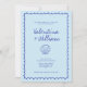 Traiga un toque de elegancia costera a su día de bodas con esta moderna invitación a la boda de la caseta mediterránea azul. Con delicados ilustraciones de conchas marinas y una tipografía limpia y minimalista que combina tonos azules tranquilizantes, este diseño es perfecto para una boda de verano, destino o playa. La combinación de suaves tonos azules mediterráneos y elementos naturales de la costa crea una estética refrescante y sofisticada que marcará el tono de su día especial. Ideal para las parejas que planean una ceremonia en la playa, una reunión costera íntima, o simplemente que desean una temática ligera, ventilada y elegante para su papelería boda. Personaliza fácilmente con tus nombres, fecha de boda, detalles del lugar y notas especiales para crear una invitación tan única y memorable como tu historia de amor. Un diseño atemporal que capta la serenidad y belleza del mar, a la vez que ofrece un ambiente limpio y moderno a sus huéspedes.