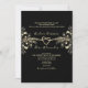 Una romántica y moderna invitación a la boda en negro y oro con encaje floral, un monograma de corazón de cuerda y tu código QR personalizado para detalles de RSVP o bodas. Este diseño combina elegancia con comodidad, perfecto para parejas elegantes que planeen una ceremonia de invierno o de noche. ¿personalizados editados? Contactar conmigo: bpkolman@gmail.com