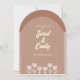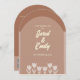 Forma moderna y única de enviar invitaciones a amigos y seres queridos. Esta invitación a la boda tiene un estilo de arco con un tema natural de flores de pie en la parte inferior. Además, hay un código QR en la parte posterior para las respuestas RSVP. Mochado en marrón mocha. Sólo cambia el texto para adaptarlo a tus necesidades. Utilice la plantilla para crear su propia invitación de código QR boda de estilo de arco.