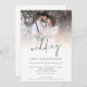 Invitación a la boda informal de guiones con la foto de moda QR Code. Con un código QR en el sitio web de su boda en la parte posterior para que sus invitados puedan ver todos los detalles en línea sin necesidad de gabinetes separados. Su código QR se generará automáticamente para actualizar el código de ejemplo en el diseño, cuando simplemente cambie la dirección URL de ejemplo de la plantilla con la dirección URL de su sitio web boda. Boda está en un guión elegante. Reemplace la foto de ejemplo con su propio favorito.