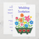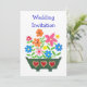 Una moda, la invitación moderna a la boda de Novia y Groom, con una ventana llena de flores de colores, de la gama de papel pintado a mano de "Flower Power" de Judy Adamson. Completa y fácilmente personalizable.