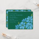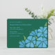 Las flores grandes, audaces y estilizadas de azul celeste apoyan los detalles bodas sobre un verde cazador rico, o un color complementario de la paleta de colores boda.