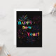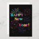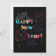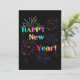 Esta invitación presenta las palabras "Feliz Año Nuevo" en una fuente de letra única/negrita con letras de diferentes colores, más fuegos artificiales y serpentinas de confeti en este tema y estilo de Año Nuevo. Impreso en un papel clásico y versátil de 17,5 pt de grosor con un acabado mate sin revestimiento y una textura de cáscara de huevo, fabricado e impreso en EE. UU. con "¡Salud!" impreso en la parte posterior.