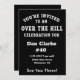 Letras blancas sobre fondo negro: todo, desde el nombre del celebrante homenajeado, se puede personalizar según sea necesario. La parte trasera de la invitación está en blanco para que puedas personalizarla aún más si lo deseas.