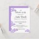 Esta elegante invitación de Celebración de la Vida presenta delicadas flores silvestres de campanilla azul en tonos suaves de lila y púrpura. Un diseño floral pacífico establece un tono suave y edificante para honrar a su ser querido. Perfecto para servicios conmemorativos, celebraciones de la vida, reuniones de recuerdo o anuncios de funerales. Personalice el texto para crear un homenaje sincero que refleje su espíritu y la belleza de su vida.