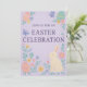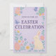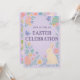Celebre la Pascua con estilo con esta encantadora invitación de dos caras. La parte frontal presenta tonos pastel con conejitos, huevos decorados, mariposas y flores primaverales, dejando espacio para detalles personalizables. La parte trasera decorativa completa el diseño con un borde juguetón de huevos de Pascua, flores y conejitos. Perfecta para desayunos de Pascua, reuniones familiares y celebraciones primaverales.