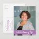 Invite a amigos y familiares a compartir sus historias y recuerdos favoritos con esta elegante invitación de tarjeta postal de celebración de vida en lavanda morado y blanco.