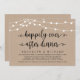 Luces de cadena de granja rústica moderna hermosa, fuente de letra negra en fondo de papel Kraft, anuncio de boda de escapada, tarjeta de invitación (Cena feliz para siempre). Esto es perfecto para la recepción de su boda y la fiesta de celebración después de la boda. Agregue sus datos en letra / letra coincidente.