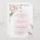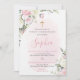Una encantadora plantilla de invitación de la Primera Comunión con flores de color rosa y beige para los chicas.