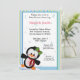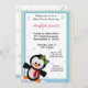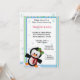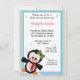 Las invitaciones a la ducha de bebé de pingüino son muy agradables para los chicas. Fondo colorido. El pingüino tiene un lindo arco de cabello verde y está parado en un iceberg. Kristi W/Graphic's in Bits.