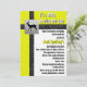 Esta brillante invitación de fin de semana de ciervo amarillo, negro y blanco es totalmente personalizable.
