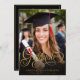 Celebra tu graduación con estilo con nuestra Elegante Invitación a Graduado de Fotografía. Esta sofisticada invitación presenta un diseño elegante y atemporal, perfecto para anunciar su logro. Lo más destacado en la parte delantera es una foto personal del graduado, con un tipo de letra, nombre, escuela y fecha de escritura rápida y elegante. Debajo del texto hay una superposición de foto degradado negro que hace que el texto sea más visible. La parte trasera es elegante y audaz en negro con texto dorado. El texto del personalizable le permite personalizar con facilidad el nombre del graduado, la escuela, el año de graduación y los detalles del evento. Imprimida con cartón de alta calidad, esta invitación ofrece un aspecto pulido y profesional, lo que lo convierte en un conservador ideal. Esta invitación está diseñada para impresionar. Ya sea que esté organizando una reunión íntima o una gran celebración, marque el tono con esta elegante y elegante invitación. Pida hoy mismo y haga su hito especial inolvidable!