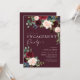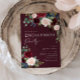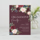 Invitación de fiesta de compromiso floral Boho Borgoña y rubor. Esta invitación se caracteriza por rosas y flores boho borgoña y rubor con dos fuentes modernas de alta clase que dan forma a las tendencias de los eventos festivos presentes y futuros.