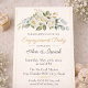 Diseño de celebración de compromiso de marfil y champán dorado con rosas suaves de acuarela y vegetación ligera en la parte superior. Título de letra script refinada con detalles serif de carbón sobre un fondo de marfil cálido. Ideal para parejas que organizan una fiesta en el jardín, recepción de cena o reunión formal con flores naturales y decoración de champán.