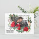 Un diseño botánico de invierno festivo perfecto para decirle a amigos y familiares que está comprometido. Por supuesto que empieza con una foto de ustedes dos. Luego enmarqué tu foto con el más delgado marco de oro y embelleció el marco con ramas de pino, estribos huecos, bayas rojas y grandes rosas rojas. ¡Mira de cerca y verás pequeños corazones rojos escondidos en el follaje para un toque romántico! Estamos comprometidos y escritos en la esquina superior derecha. Sus nombres y un breve mensaje están en la esquina inferior izquierda. Esta es una elección maravillosa si nos comprometemos con el feriado de los Navidades y a través del Día de San Valentín. ¿Necesitas ayuda con todo esto? Mándame un mensaje. Soy Nelda y me encantaría trabajar con usted. ¡Felicitaciones por tu compromiso!