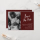 Esta elegante invitación Save the Date con foto - cuenta con letra blanca manuscrita y un espacio para tu foto sobre un fondo burdeos. El reverso de la invitación es burdeos. Puedes añadir tu propia foto o dejar esta foto en un estilo clásico. Si necesitas ayuda para procesar tu foto, por favor escríbeme un mensaje.