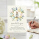 Celebra la alegría de la Pascua con esta encantadora invitación de conejo al estilo acuarela. El diseño presenta un dulce conejo rodeado de una guirnalda festiva de globos pastel, delicadas flores primaverales y exuberante hierba verde. Esta invitación es perfecta para anunciar tu brunch de Pascua y búsqueda de huevos, invitando a seres queridos a compartir en las festividades primaverales. El suave estilo acuarela y los colores pastel evocan una sensación de calidez y fantasía, lo que la convierte en una opción ideal para una reunión memorable de Pascua. ¡Da la bienvenida a tus invitados con un toque de magia de Pascua!