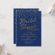 Invitación de Confeti de Hoja Metálica Azul y Dorado para Despedida de Soltera.