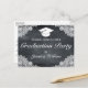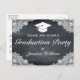 Tarjeta postal de confirmación de asistencia a graduación. Fondo de pizarra de tiza negra y decoración de encaje blanco.