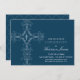 Esta elegante tarjeta de invitación de confirmación de 4,5" x 6,25" presenta una cruz ilustrada ornamentada y una cruz más pequeña con iniciales (monograma) a ambos lados. El color de fondo es azul marino, y se puede personalizar a tu gusto junto con el texto para tu ocasión religiosa especial.