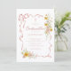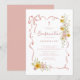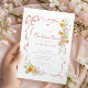 Celebre su día especial con esta elegante invitación de Confirmación floral de color rosa. Con delicadas flores primaverales de acuarela en tonos suaves de rosa y amarillo dorado, acentos de cinta fluida y un detalle de cruz minimalista, este diseño es femenino y atemporal. Perfecto para honrar la Confirmación de su hija, la suave disposición botánica y la tipografía de letra cursiva crean un recuerdo refinado y lleno de fe que los invitados apreciarán. Personalice fácilmente con los detalles de su evento para una hermosa celebración de iglesia primaveral.
