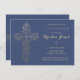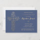 Esta moderna invitación de confirmación incluye una intrincada cruz de estilo "Relieve metalizado" dorada y la palabra "confirmación" en un estilo moderno. El fondo es azul marino, pero puede ser personalizado a cualquier color que elija para su celebración y ceremonia religiosa especial.