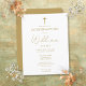 Esta elegante tarjeta postal de invitación de confirmación dorada se puede personalizar con su información en tipografía chic. Diseñado por Thisisnotme©