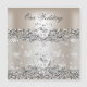 Plantilla de invitación elegante y sofisticada de encaje de joyas con corazón de diamante blanco crema plateado para boda