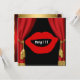 Invitación de cortinas de fiesta de cumpleaños con labios grandes, tambores, saxofón, trompeta, negro, rojo, dorado